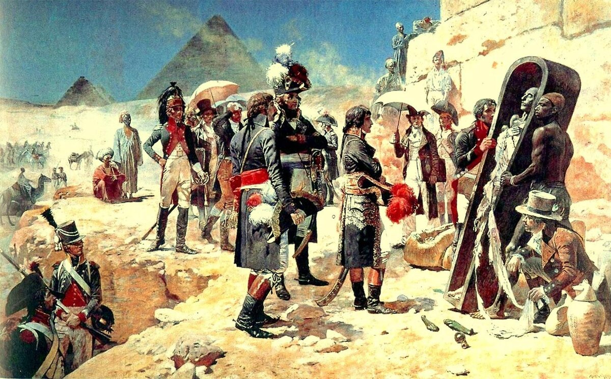 Что делал Наполеон в 1798 году в Египте ? Поход Наполеона в Египет до сих пор окутан тайной. В первую очередь это связано с несуразностью официальной версии. По которой целью Наполеона было образовать колонии на берегу Красного моря и оттуда проложить новый путь в Индию. Достаточно посмотреть карту его боевых действий в Египте что бы сразу заметить странности. Зачем то высадившись в Александрии он сразу через пустыню понесся в Каир. Захват путей в Индию тут как то не очень. Удивляет и состав французской экспедиции. Особенно ее многочисленная группа ученых. По разным источникам в состав группы, ученых входило 150 человек. И вот тут начинается самое интересное. Среди ученых были химики, лингвисты, инженеры-механики, чем же они там занимались? К примеру чем мог заниматься в Египте уже известный нам Клод Бертолле изобретатель бертолетовой соли? Сейчас существует множество версий пытающихся объяснить для чего Наполеон предпринял этот безумный поход в Африку. Некоторые даже утвержд
