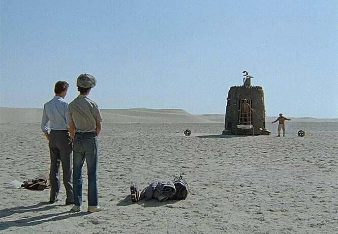 Огромное количество сценарных идей и художественных красот так и не удалось перенести на экран, так как где-то тупо не хватало денег. А с костюмами, например, так и вовсе вышла анекдотичная, чисто советская история. Параллельно с фильмом Данелии готовились съемки эпика Сергея Бондарчука «Борис Годунов», так что пошивочный цех «Мосфильма» работал в авральном режиме и потому отказался делать задуманные для «Кин-дза-дза!» костюмы. «Вот что надето на Леонове: ботинки из картины «Тиль Уленшпигель». Костюм для Яковлева я самолично красил в пустыне в ванне с чернилами», — вспоминал Данелия.