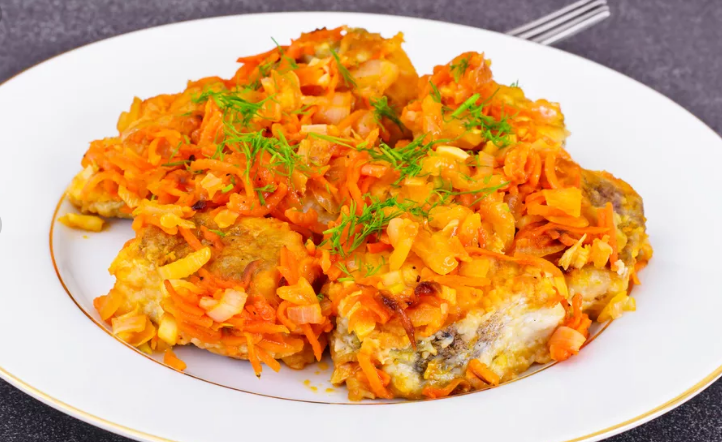 Такую тушеную рыбку можно сделать абсолютно с любой рыбы. Получится очень вкусное и сытное блюдо, для всей семьи! Для приготовления понадобится: любая рыба - у меня 2 средние рыбки минтая репчатый лук - 3 средние головки морковь - 2 небольшие куриное яйцо - 1 шт. кукурузная мука - 50 гр. сметана 10 % - 2 ст. ложки томатная паста - 2 ст. ложки оливковое масло - 1 ст. ложка соль перец Способ приготовления: 1. Для начала разделываем рыбу и нарезаем ее на кусочки. В глубокую чашку разбиваем 1 яйцо, добавляем щепотку соли и немного перчим. Взбиваем все вилочкой и кладем нарезанную рыбу, хорошенько перемешиваем и оставляем минут на 15, пока готовим лук с морковкой. 2. Очищаем лук и морковь от кожуры. Нарезаем мелко лук и натираем на крупной терке морковь 3. Разогреваем сковороду и наливаем немного оливкового масла. Как только масло нагреется начинаем обжаривать лук с морковкой 4. Спустя минут 5-7 кладем томатную пасту, перемешиваем и жарим минутки 2-3 5. Следом кладем сметану и все хорошень