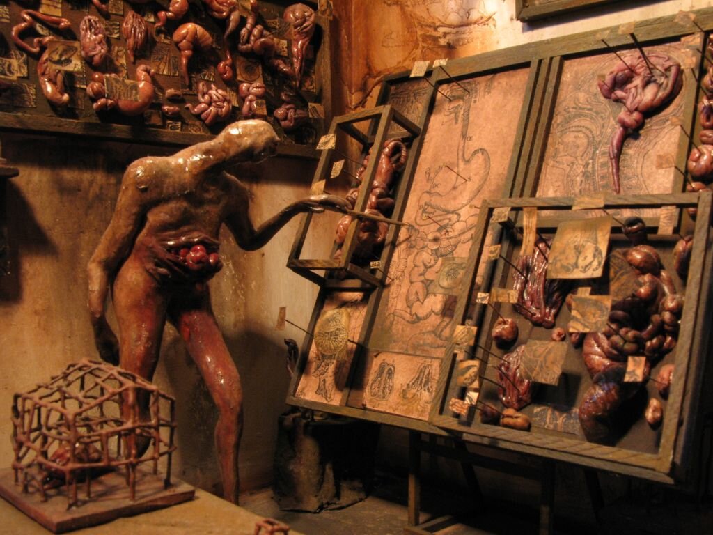Начиная с 2008 года, художник Мельбурнский художник Марк Пауэлл взял лучшее из того, что было у каждого из его знаковых коллег и сделал на основе этого свои Диорамы. Созданные сцены ужаса изобилуют кровью, но то, что делает их такими выдающимися, - это тревожная реальность изображенных монстров. Пауэлл создал средневековый мир, в котором боль и страдания являются данью славе плоти. Это мир, в котором его жители прижимают свои кишки к стене в рамках лекции по биологии, и, кажется, полностью смирились с идеей съесть свой собственный вид... или себя. "Мои скульптуры преувеличивают и искажают жестокие биологические процессы вырождения и регенерации природы, паразитизм и людоедскую переработку плоти, которая позволяет бесчисленным формам жизни развивать все более сложные перцептивные и локомоторные функции" - писал Марк однажды о своей работе. Примерно в 2012 году Пауэлл исчез из поля зрения общественности, удалив свой веб-сайт и учетные записи в социальных сетях. Мы, конечно, надеемся, чт