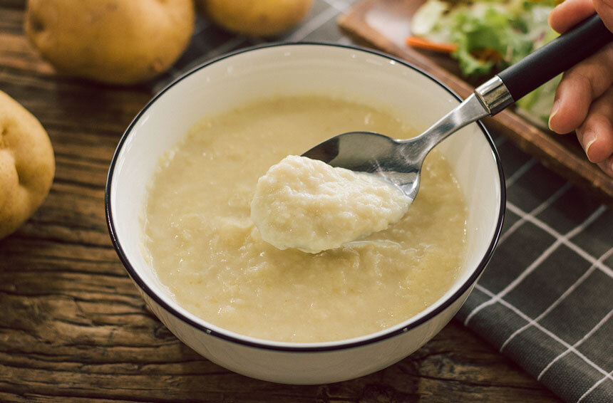 Ингредиенты Картофель_____________________________________________________________ 3 штуки Лук______________________________________________________________________ 1 большая Куриный бульон______________________________________________________ 1 кубик Молоко_________________________________________________________________ 300 мл. Соль____________________________________________________________________ Черный перец_________________________________________________________ Сливочное масло_____________________________________________________ 1 ч. л. Сыр чеддер____________________________________________________________ Гренки__________________________________________________________________ Способ приготовления 1) Картофель нарезать крупными дольками, лук нарезать полукольцами. 2) На дно карстрюли опускаем сливочное масло и растапливаем его, запускаем лук и жарим до прозрачности лука. Добавляем картофель, перемешиваем и заливаем водой, так чтобы она закрывала картофель и добавляем кубик