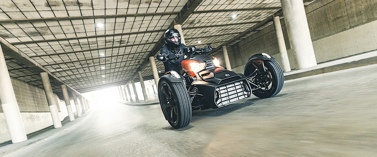 Компания BRP представила новую модель трицикла Can-Am Ryker, стоимостью от $8 499. Новая модель трехколесника, явно адресована молодому поколению. Плюс, наконец-то появилась и внедорожная модификация трицикла. Внешний облик Can-Am Ryker, наверняка вызовет много споров. Одним Can-Am Ryker очень понравиться, другие назовeт его непонятным уродцем. Зато, все согласятся с выводом, что канадцы сумели опять удивиться всех своей конструкторской смелостью и решительностью продолжить развивать трехколесную тему. У модели Can-Am Ryker два мотора: двухцилиндровый Rotax 600 ACE – 45 «лошадок» и 3-цилиндровый Rotax 900 ACE мощностью 77 л.с. Совместно с компание BOSCH для Can-Am Ryker была разработана система устойчивости. Трансмиссия вариаторного типа. Однако привод на заднее колесо – кардан, что позволило создать на базе Ryker модификацию, способную ездить по грунтовым дорогам. Никто не говорить о грязи и внедорожных походах. Тем не менее, тем гарцуя по камням, как минимум, не надо будет