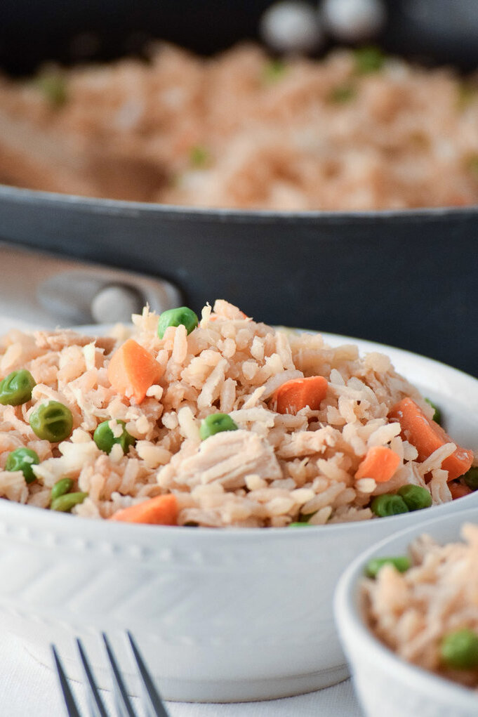 Жареный рис с курицей это одно и быстрых блюд, которое стоит приготовить, когда хочется чего-то легкого, но в то же время сытного. В рецепте можно использовать вареную замороженную курицы, что даже сократит время приготовления. Это универсальное блюдо, можно использовать практически любые овощи, а вкус останется неизменно прекрасным! Можно использовать коричневый рис вместо белого, можно заменить курицу на говядину, свинину, бекон, креветки и прочие морепродукты. Количество комбинаций зависит только от вашей фантазии. Рецепт рассчитан на 6 порций Ингредиенты 1. 3 столовые ложки оливкового масла низкой кислотности