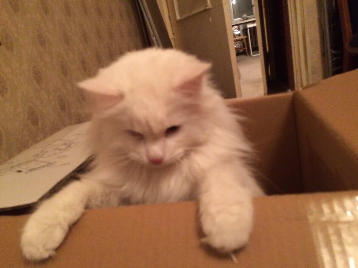Наконец весь этот детский сад угомонился. А у меня уже и сил не было куда-то там идти, так у них в коробке и заснула.