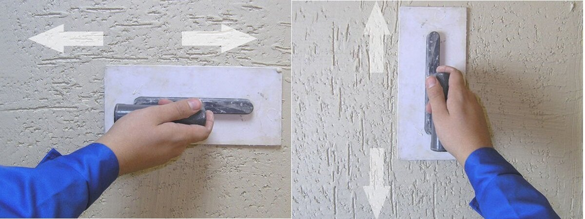 В сущности, наиболее сложным является именно этап создания рисунка, когда направление движений определяет, каким будет конечный результат: если вы хотите получить косой дождик, то следует обрабатывать стену под углом, а для овального узора делать круговые движения. По возможности желательно избегать наплывов и неровностей – в этом случае внешний вид поверхности будет идеальным во всех отношениях.