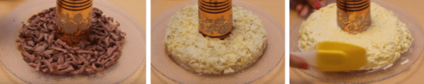 Ингредиенты: Для маринования лука: Приготовление салата с говядиной. 1. Сварите овощи и яйца. Также сварите мясо до готовности. Чтобы мясо получилось вкусным, закладывать его нужно в кипящую воду, солить в конце приготовления. 2. Гранат почистите, как было написано в рецепте выше. 3. Лук нужно замариновать. Для этого нарежьте его кубиком, залейте уксусом, положите сахар, соль, размешайте. Оставьте на 20 минут. 4. Грецкие орехи измельчите ножом. 5. Отваренное мясо нарежьте мелким кубиком. Крупные куски будет неудобно выкладывать в форме браслета. 6. Натрите на крупной терке отдельно морковь, картошку, яйца, свеклу. 7. Изюм хорошо промойте и замочите в холодной воде на 20 минут. Заливать кипятком не нужно, потому что в воде остаются все витамины. После этого обсушите изюм бумажными полотенцами. 8. Смешайте морковь с изюмом, немного посолите. 9. Натертую свеклу смешайте с орехами, а также выдавите в нее чеснок через пресс, посолите немного, потому что будет еще