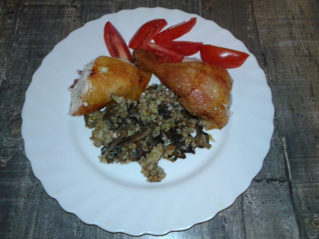 Аппетитная запеченная курочка, фаршированная гречкой и грибами
