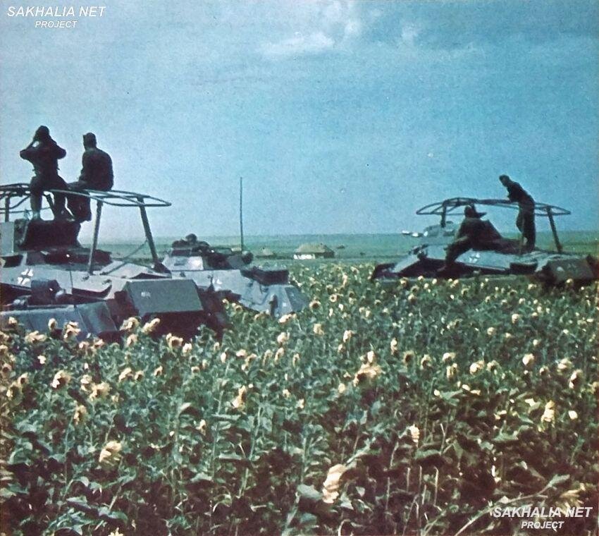 Мы продолжаем знакомить вас с немецкими цветными фотографиями, сделанными во время Великой Отечественной войны/ Сегодня мы покажет фото, снятые во время немецкого наступления на Сталинград и боев на улицах города. Итак, После разгрома наших войск под Харьковом немецкие войска вырвались на оперативный простор и быстро продвигаются к Волге, лето 1942 года: То же самое, немецкая колонна движется в сторону Волги: Немецкие артиллеристы ведут огонь по советским позициям под Сталинградом: Немецкие танки на окраинах Сталинграда: Бои на улицах Сталинграда: Итальянский солдат на позиции в степи под Сталинградом, зима 1942 года