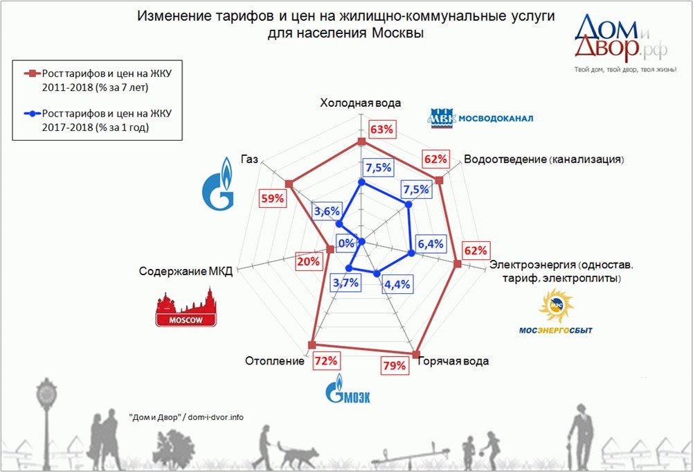 2011-2018 гг: изменение тарифов и цен на жилищно-коммунальные услуги для населения Москвы