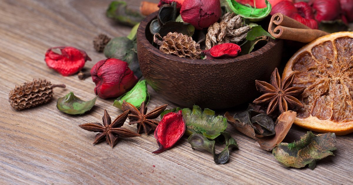 Действительно, это не очень сложно сделать попурри самостоятельно, особенно когда у вас есть сад. Собирайте цветы и листву в своем саду или в поле и лесу, высушите их, разложив дома, например, на газету в темной и проветриваемой комнате. Это займет несколько дней. Более быстро можно высушить в микроволновке в течение 3 минут при средней мощности. Положите цветы и листья на тарелку, покрытую бумажным полотенцем. Специи, которые уже есть на кухне, также можно добавлять в смесь, даже если у них законч