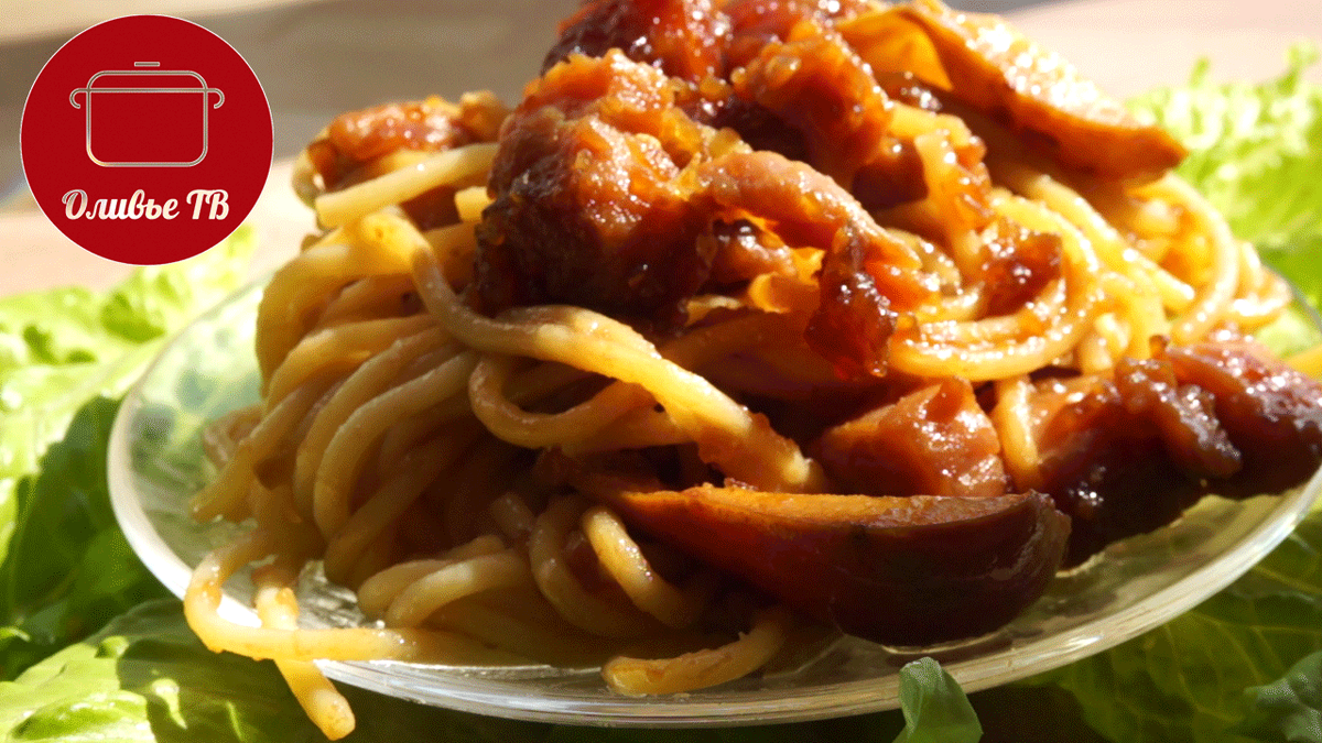 Свинину режу на кубики, груши разрезаю на четвертинки, удаляю сердцевину. Готовлю соус - смешиваю горчицу, мед, чеснок, соевый соус. Получившемся соусом заливаю свинину и груши и оставляю мариноваться на 40-50 минут. На разогретую сковороду выкладываю замаринованные мясо и груши и жарю на сильном огне. КОгда почти вся жидкость испарится, посыпаю крахмалом и перемешиваю. Плиту выключаю. Всего на обжаривание мяса уходит около 10 минут. Заранее отвариваю спагетти и выкладываю их в сковороду на мясо. Перемешиваю и даю настояться 5-7 минут. Карамельная свинина с грушами готова! Приятного аппетита от Оливье ТВ! :)
