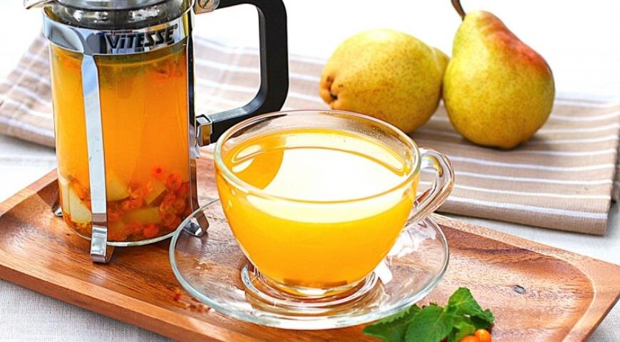 Ингредиенты : Способ приготовления: Необходимо помыть ягоды облепихи и растолочь с розмарином. Грушу с имбирем натереть на мелкой терке,все вместе смешать и положить гвоздику. Залить горячей водой и оставить завариваться 5-7 минут.