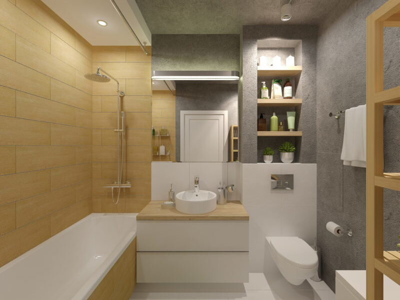 Создание уюта в большой комнате – это настоящее удовольствие. Но если нужно обустроить маленькое помещение, то вариантов дизайна – минимум. Интерьер ванной комнаты 5 кв.м нужно продумать хорошо, включая все мелочи и аксессуары. И нужно помнить, что в таком помещении ничего не должно быть лишним, площадь должна быть функциональной, вместительной, но не загруженной. Не знаете, как это сделать? В этой статье раскроем несколько секретов и поможет привнести в ванную комнату уют, комфорт и домашнюю обстановку. Особенности ванной комнаты площадью в 5 кв.м Уборная таких габаритов относится к помещению средних масштабов. Обустроить пространство проще и легче, чем комнату поменьше. Но все же, есть ограничения. Если хотите, чтобы интерьер ванной комнаты 5 кв.м был хорошо продуманный, совершенный и стильный, тогда нужно знать особенности и возможности этой площади: 1. Это, обычно, совмещенный санузел. 2. Площадь позволяет устанавливать душевую кабину, ванну, унитаз, раковину, стиральную машину и и