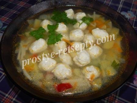 Как приготовить вкусный суп с куриными фрикадельками в мультиварке Небольшую репчатую луковичку нарежьте мелкими кубиками и высыпайте на дно чаши мультиварки для обжаривания. Ставим режим «Жарка». Как только он немного обжарится, отложить половину в чашку, оставить для фрикаделек. Добавить к луку в мультиварку нарезанный кусками болгарский перец (можно замороженный), измельченные корешочки сельдерея и одну морковочку сочную, предварительно натрите ее, можно использовать как среднюю, так и мелкую турочку). Обжаривать на режиме «Жарка» еще 10 минут. Залить два литра воды, заложить промытый рис и поставить режим «Суп» на один час. В это время сделать фрикадельки. Куриную грудку разобрать, удалить косточки .Перекрутить филе на мясорубке, смешать с отложенной половинкой обжаренного лука. Посолить и поперчить. Руки смочить в воде и формировать из фарша шарики — фрикадельки, размером в пол см. За 15 минут до созревания супа открыть мультиварку и выложить фрикадельки. За 5-