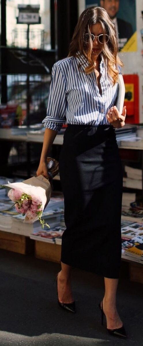 Самый удачный вариант – юбка прямого кроя. Покупая такую юбку, следует обратить внимание на материал, из которого она сшита. Хорошо, если это будет качественная и плотная материя. Плотненьким девушкам подойдут юбки не ниже колена. Женщинам невысокого роста такая юбка поможет визуально сделать ноги длиннее. Выбирайте юбку по размеру. Недопустимо носить юбку прямого кроя, которая будет великовата или наоборот, стеснит при ходьбе.