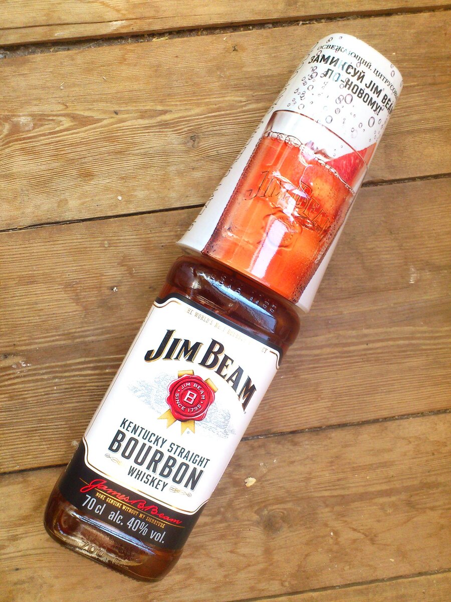 Написанное ниже является субъективным оценочным суждением автора. Употребление алкоголя не рекомендуется и вредит здоровью. Вы видели акционный бурбон Jim Beam? В нагрузку к бутылке прилагается стакан! Я вообще люблю фирменные стаканы, и, возможно, в будущем у меня их соберётся целая коллекция, но этот стакан произвёл странное впечатление - он какой-то никчёмный. Отдельным пунктом стоило бы рассказать о распаковке, так как не каждый человек с уже неидеальным зрением сможет догадаться, как снять этот стакан без использования сурового металла. Методом визуального осмотра, включая заглядывание в узкую щель между краем стакана и бутылкой, было установлено, что внутри имеется некая пластиковая деталь, которая удерживает стакан на бутылке. А ещё стакан запаян в пластик с рецептом, напоминающим рекламу. Соображали в тот раз на двоих. В конце концов, когда к визуальному осмотру добавили медленное вращение, удалось в 4 глаза распознать двойную пунктирную линию и сообразить, что она может быт
