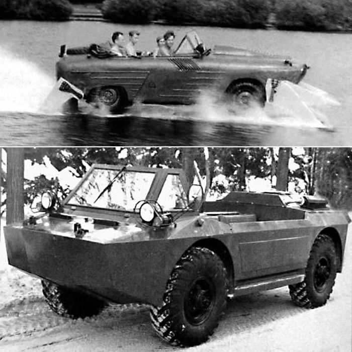 Хотел написать для вас о чем-то интересном, и вот набрел на информацию про эту необычную амфибию под названием НАМИ - 055, созданную на базе Москвич - 410. Информации про это создание не так уж и много, но я отобрал для вас самое интересное! В этой амфибии было все достаточно просто: цельный, обтекаемый корпус из металла, без дверей, на плаву внешне выглядела как катер. Также стоит заметить, что на воде колеса втягивались в боковые ниши. Это было сделано инженерами для того, чтобы повысить скорость и обтекаемость амфибии на плаву. Максимальная скорость на воде - 12 км/ч. Чуть позже были созданы модификации НАМИ - 055, которые могли развить скорость до 50 км/ч. Спасибо за внимание! Буду очень рад, если вы оцените мои старания подпиской и лайком этой статьи. Подписавшись на мой канал, вы всегда будете в курсе моих новых статей, вам просто - а мне приятно!