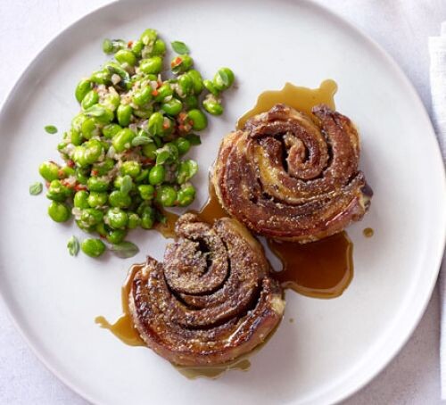 Хрустящий ягненок с бобами, чили и майораном.
