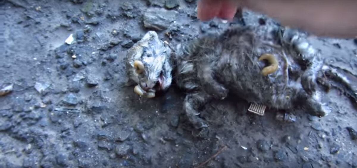 Этого котенка потеряла мама-кошка, и он лежал облепленный слизнями, ни на что больше не надеясь...