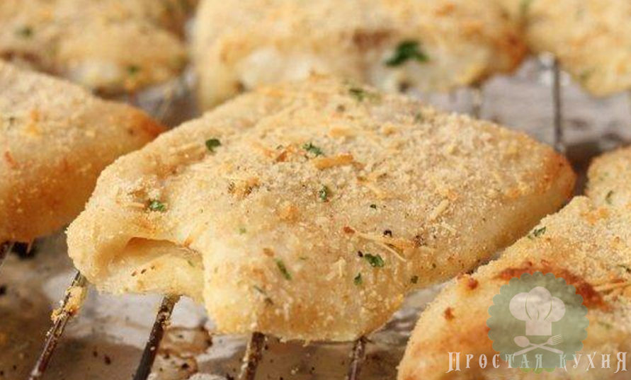 Филе белой рыбы в панировочных сухарях с сыром