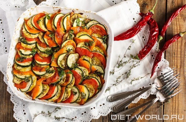 Во время приготовления нарезанные овощи можно по разному укладывать в форму для запекания — слоями, спиралью и так далее. На вкус это не влияет, а вот с внешним видом можно «поиграться».