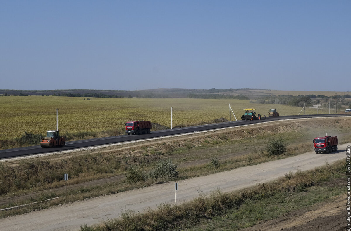 Начнём с дороги к нему. Северный автоподход уже достраивается (про начало строительства этой дороги я делал репортаж, оно стартовало в ноябре 2016 года). Длина подхода - 12,32 км. Ширина дороги - 9,25 м. Дорожная "одежда" - 80 см, что на 20-30 см толще обычного - на перспективу.