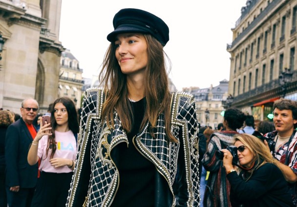 Кожаные кепи — это очень сексуально! Конечно, есть и более «спокойная» альтернатива из мягких тканей пастельных оттенков… Но кожа и лакированная кожа, все же, в фаворе.