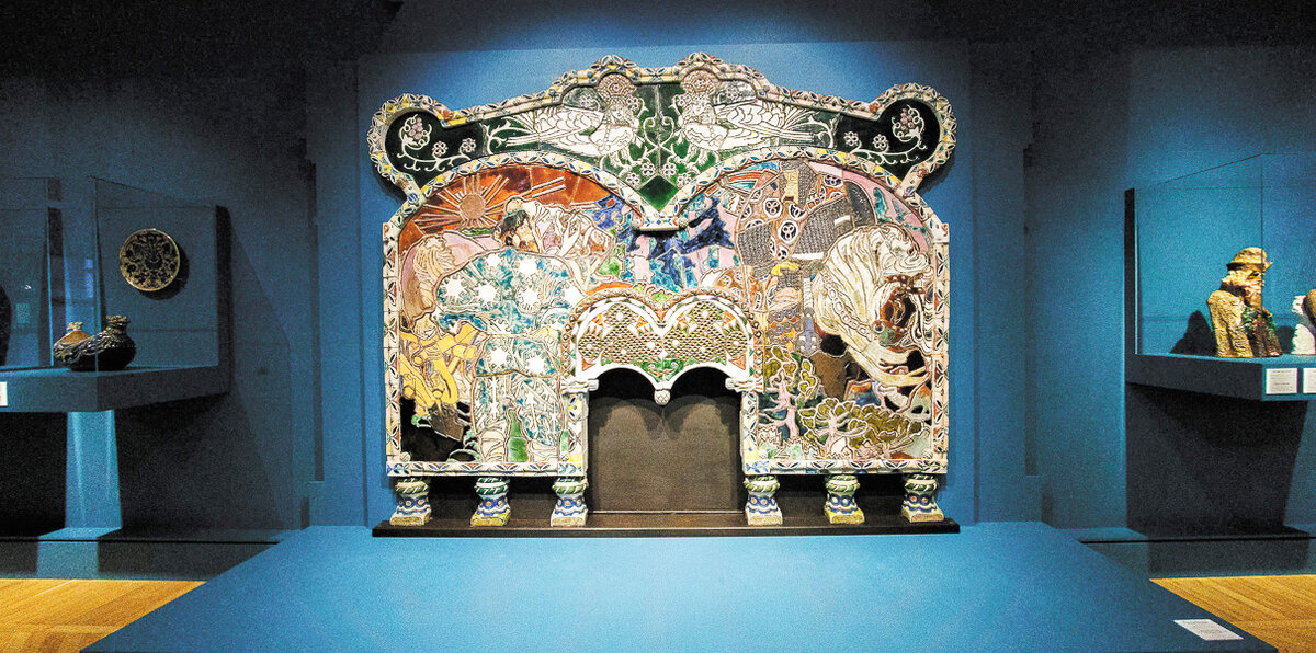 Впечатляющим экспонатом выставки, отражающим поиски русского стиля в героическом эпосе и фольклоре, является созданный по заказу Саввы Мамонтова камин Михаила Врубеля "Встреча Вольги Святославовича с Микулой Селяниновичем". Согласно былинам, Микула Селянинович — легендарный пахарь-богатырь, одной рукой поднимавший сумку со "всей тягостью земной", — олицетворяет спокойную крестьянскую силу, подпитываемую родной землей. Вольга Святославович — самый древний и неоднозначный персонаж русского фольклора — увидел в Микуле могучего богатыря и позвал в свою дружину.