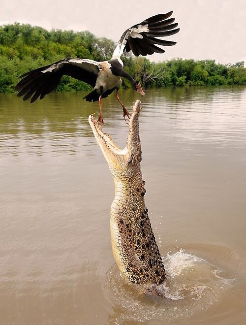 Крокодилы - оппортунистические охотники, они охотятся на всех животных , которые находятся на их территории.Крокодилы лежат на берегу или лежат в воде в течение большинства часов дня. Однако, если жертва окажется в пределах досягаемости, он может атаковать жертву очень быстро. Это стратегия, которая позволила этой группе животных выживать миллионы лет. Это метод экономии энергии, так что крокодилы могут голодать в течение многих месяцев без проблем или только время от времени добывать добычу. Быстрые охотники. В ходе эволюции крокодилы прекрасно адаптировались к своей среде обитания. Они отлично смотрятся и имеют очень тонкое обоняние. Погружённые воду, они терпеливо ждут свою добычу. В основном видны только ноздри и части спины. Они воспринимают даже самые тонкие движения в воде и таким образом, ощущают свою жертву. Благодаря большому мускулистому телу, они могут выпрыгивать из воды в мгновение ока и схватить свою добычу острыми зубами и разорвать её. Челюсти этих плотоядны