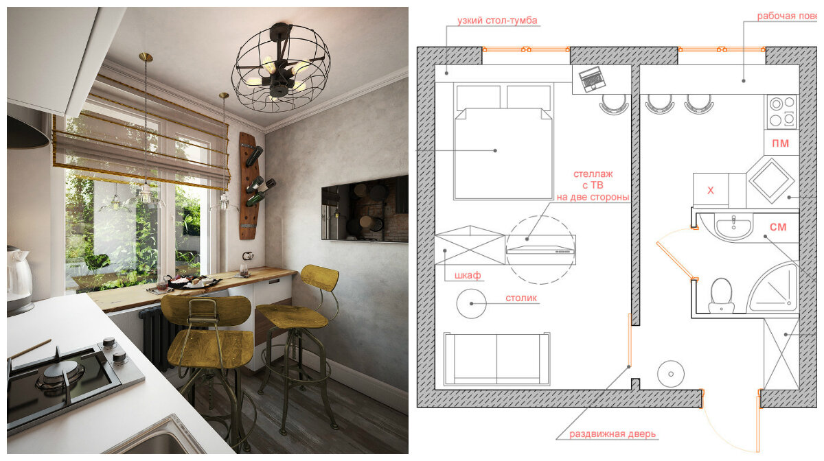 Перепланировка однушки 32,6 м² в панельной хрущёвке: 6 схем (бесплатно)