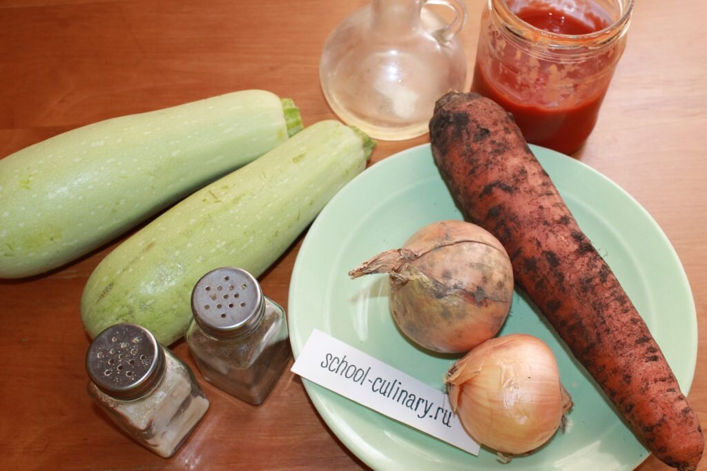 Готовим кабачки тушеные на сковороде. Это витаминное блюдо полезно и очень вкусно. А союз нейтральных кабачков с морковью и луком удивительно гармоничен. Кушанье подойдет для вегетарианцев и тех, кто считает калории. Готовится оно быстро. Все продукты можно найти в холодильнике или на грядке возле дома. Вкусно полакомиться такой едой вместе с кусочком хлеба. Можно предложить ее в качестве дополнения к горячим блюдам. Ингредиенты: Приготовление Морковку и репчатый лучок очищаем и ополаскиваем. Количество этих овощей зависит от предпочтений хозяйки. Можно положить больше или меньше. Но морковь нужно брать обязательно, так как от ее наличия зависит красивый цвет блюда. Лук режем кубиками среднего размера. Морковку трем на крупной терке. В сковороду наливаем растительное масло, выкладываем овощи. Ставим на плиту. Включаем нагрев и жарим 5 минут, перемешивая. В это время чистим и моем кабачки. Нарезаем их некрупными кубиками. Если плоды старые, то мякоть с семенами нужно удалить. Лучше вс