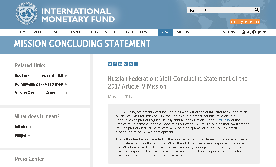 В середине января 2017 года Кудрин на Гайдаровском форуме выступал за повышение пенсионного возраста. Уже в мае 2017 года, в пресс-релизе МВФ Международный Валютный Фонд рекомендовал Российской Федерации провести в стране пенсионную реформу. "... В этой связи следует продолжить законодательную разработку метода санации за счет собственников и кредиторов (bail-in) c учетом последствий для финансовой стабильности. Дальнейшее повышение эффективности системы БОД/ФТ, включая меры, связанные с политически значимыми/публичными должностными лицами и обеспечением прозрачности юридических лиц, будет способствовать борьбе официальных органов с финансовыми преступлениями, связанными с уклонением от уплаты налогов и коррупцией.<...> И наконец, пенсионная реформа, предусматривающая законодательное повышение возраста выхода на пенсию, способствовала бы смягчению воздействия отрицательных демографических тенденций на рынок труда, в то время как надлежащим образом разработанное бюджетное правило позв