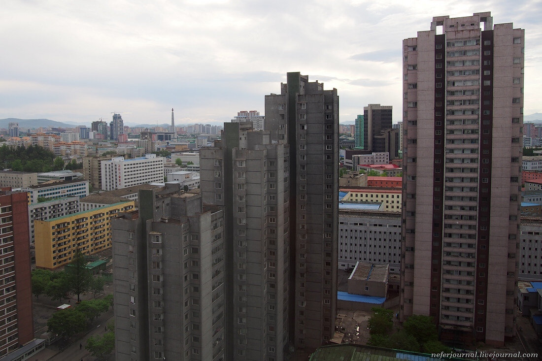 Пообщавшись с другими участниками нашей группы, я поняла, что мне повезло с видом. Каждый день я наблюдала монумент идей чучхе, а у некоторых окна выходили на стройку.
