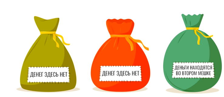 Судьба вам дала шанс. Перед вами 3 мешка. В одном из них спрятан миллион долларов!