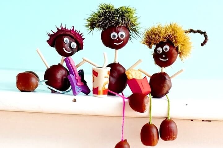 Есть два варианта крепления в таких поделках. Если вы делаете их с ребенком школьного возраста (особенно если это поделка в школу), желуди лучше всего скрепить клеем. Делаете таких зверят и человечков в детский сад? Тогда скрепляйте материалы пластилином.