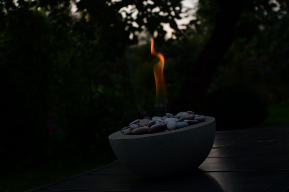 Всем привет! Сегодня я хочу показать как просто можно сделать своими руками небольшой настольный биокамин. Такую чашу можно поставить и в саду или на веранде – прохладными вечерами очень приятно посидеть возле него с друзьями за чашкой чая, погреться и посмотреть на живой огонь. А можно использовать и в помещении – биокамины хороши тем, что работают на изопропиловом спирте, и при горении не выделяют вредных веществ, дыма и запаха, а значит вам не нужна вытяжка, дымоход и прочие обычные «каминные» атрибуты. Ну а сделать его совсем несложно! Для работы вам потребуется: - две круглых миски для опалубки. Я купила самый дешевый набор мисок, какой нашла (около 100 руб), внешний диаметр моего камина около 30 см. Кстати необязательно делать камин круглым, можно и прямоугольную или квадратную опалубку сколотить из подходящих дощечек; - любое минеральное масло для смазывания опалубки (я использовала Джонсонс Беби); - сухая смесь или цемент+песок для бетона; - плоская широкая консервная банка. Ба