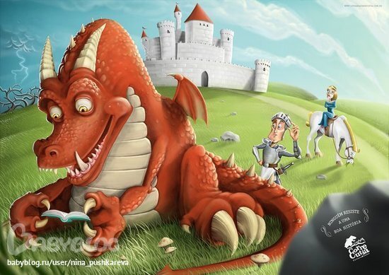 Рыцарь перевел дух, все-таки спорить с принцессой, это вам не с драконом сражаться - посложнее будет, и пошел искать дракона. Тот, действительно обнаружился неподалеку. Он сидел на лужайке и с увлечением читал какую-то книгу уйдя в нее с головой и совершенно не обращая внимания на окружающее.