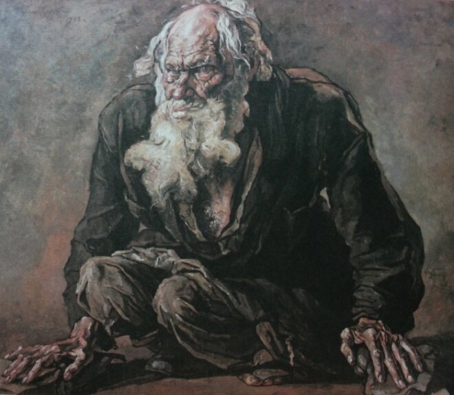 Это стихотворение было написано в 1886 году, в начале творческой деятельности Ивана Алексеевича и является первым напечатанным лирическим произведением. Оно рассказывает о том, как была наполнена страданием жизнь бедных и больных людей на Руси, через описание последних лет жизни старого нищего инвалида. Этого не увидешь в "столице": "редко виден страдалец такой". Единственное, что осталось у этого человека, - это воспоминание о тяжелой жизни, проведенной за изнурительным и непосильным трудом.