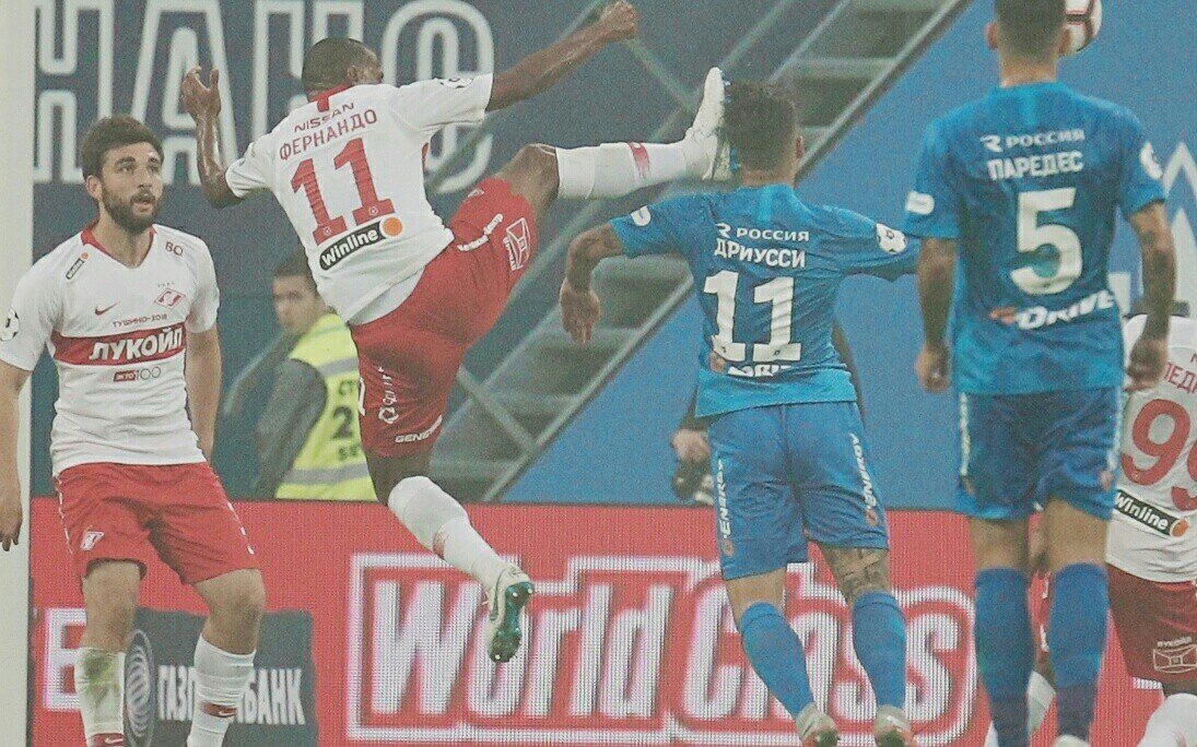 Во время матча 6 тура между Санкт-Петербургским Зенитом и Московским Спартаком произошел жесткий стык между аргентинским нападающим Зенита Себастьяном Дриусси и бразильским полузащитником Спартака Фернандо. Во время второго тайма на 50 минуте произошел жесткий стык в штрафной площади красно-белых. Бразильский полузащитник Фернандо прямой ногой влетел в голову аргентинцу Дриусси. По хорошему в данном эпизоде нужно было назначить пенальти в ворота Спартака , но Владимир Москалев посчитал иначе и проигнорировал этот момент. В результате стыка аргентинцу долгое время оказывали медицинскую помощь и унесли на носилках. Сам же нападающий сине-бело-голубых Себастьян Дриусси говорит что , нарушение в данном эпизоде 100% было и нужно было назначить одиннадцатиметровый удар. Это был очень быстрый игровой момент , аргентинец первый оказался на мяче , но Фернандо просто прямой ногой влетел в голову и чуть не проломил череп. На самом деле эпизод очевидный , но почему не был назначен пенальти - это
