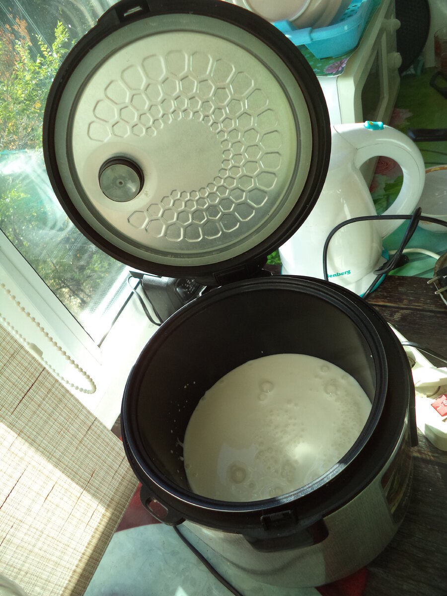 До рождения сына творог в моем меню был редким гостем. Когда сыну исполнилось 6 месяцев, я решил купить мультиварку - помощницу жене в приготовлении еды. Мне еще понравилась одна из функций мультиварки - приготовление творога из кефира. Творог должен быть обязательным пунктом в меню ребенка, так как в нем много необходимых для развития ребенка компонентов: минералы – калий, кальций, магний, фосфор, железо, медь, фтор, марганец; витамины – А, бета-каротин, B1, B2, B4, B5, B6, B9, B12, C, PP, E; и конечно же белок. В магазине сложно найти хороший творог, без добавления пальмового масла, поэтому для сына готовлю творог сам. Делаю творог так: 1. 900 мл. кефира жирностью 2,5 % выливаю в чашу мультиварки. Включаю программу -молочная каша, время - 20 минут (мультиварка фирмы Редмонд). Можно идти по делам:) 2. Через 20 минут кефир превратился вот в такую субстанцию:) 3. Затем беру дуршлаг, выстилаю его марлей в несколько слоев, вставляю дуршлаг в кастрюлю и выливаю в него сод