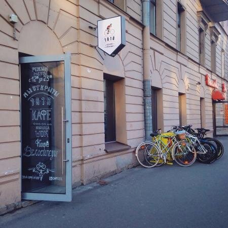 А я продолжаю рейтинг петербургских заведений, где действительно вкусно. Чем дальше, тем ниже цена, но не качество. 3. Кафе "1818". Необычное место, сочетающее в себе велосипеды и еду. 1818 - пространство, где можно взять велик на прокат и вкусно поесть. Здесь готовят уличную еду высокого качества. Здесь вас прокатят и накормят. Мы с подругой забежали в кафе, когда в Питере (какая неожиданность) шел дождь. Мокрые и голодные мы огляделись и сначала не поняли, куда попали. На 2GIS я забила "поесть", а в помещение стояли велосипеды и буклеты с расценкой. Потом я увидела столики и решила занять место. К нам подошла девушка и подала меню. Тогда я поняла, что кафе имеет необычную фишку. Покатавшись на велосипеде по волшебному городу, тебе не нужно искать место, где можно было бы перекусить, ведь вместе с велопрокатом "1818" предлагает уличную еду. Еда. Здесь есть завтраки: сырники, омлет, каша. Небольшой выбор основных блюд: несколько салатов, шаверма и пицца. Мы решили взять последнее и