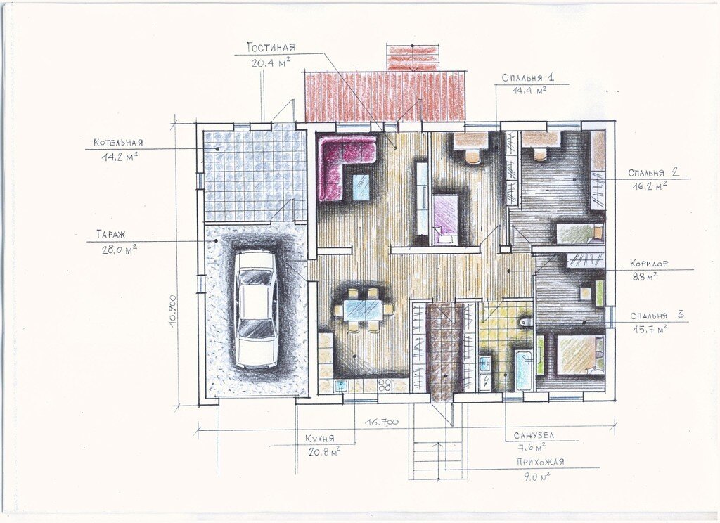 Выбираем проект, либо придумываем из головы. Я для примера взял вот этот проект. Он будет основой приближенной для нашего . 10,90*16,70