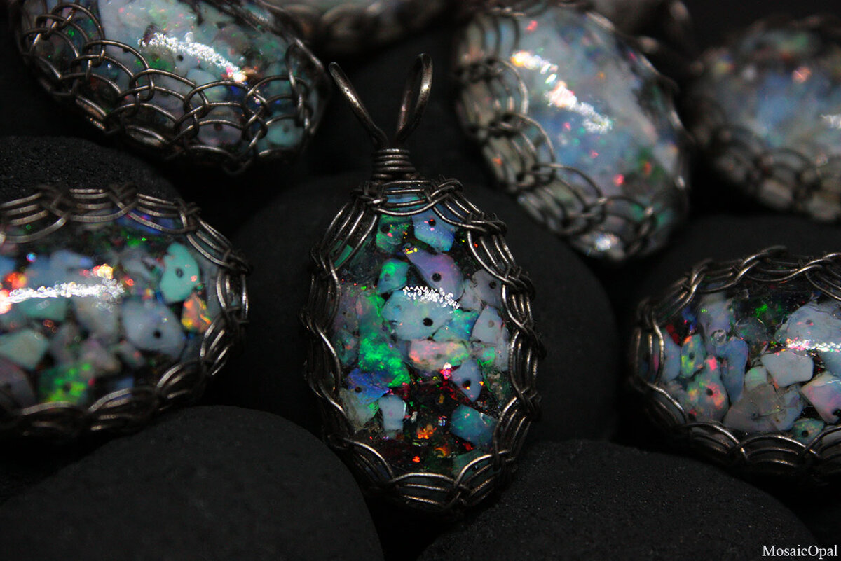 Здравствуйте, девочки, здравствуйте, мальчики, Смотрите на меня в окно и мне кидайте свои пальчики, да-а Ведь я сажаю алюминиевые огурцы, а-а на брезентовом поле Я сажаю алюминиевые огурцы, а-а на брезентовом поле. Три чукотских мудреца твердят, твердят мне без конца: "Металл не принесёт плода, игра не стоит свеч, а результат - труда"... Кино (Виктор Цой). Неделя работы. Смозолил руки, извел больше 10 метров проволоки, запорол видео, но не сломал ни одного стеклянного кабошона. Уже прогресс. Да и проволоку переделывал только 3 раза. Как-то меня спрашивали про опалы. Так вот, ниже они - в баночке. Снял с нитки и помыл. Удивительный контраст с кулонами, да? Такой вот вредный магический камень. Требует работы и правильного фона. Ну и немного про процесс. Лаву и лунный камень для кулонов - беру бусами и ломаю потом молотком. Из них потом выходит отличная подложка. Опалов уходит меньше, а их игра только лучше раскрывается. Ну и просто немного красивой медной проволоки. Снизу - в лаке, а