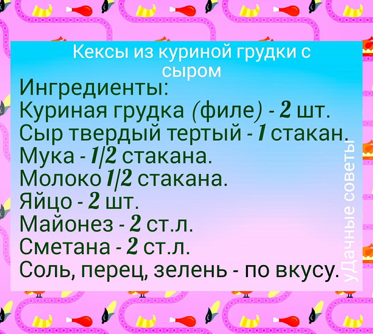 Не знаете, как приготовить куриную грудку? Сделайте куриные кексы! На моей памяти это самый простой рецепт приготовления самой сухой куриной части. Делается очень быстро, а на выходе получаются изумительные кексы для тех, кто не любит сладкое. Впрочем, еще это отличный вариант закуски. Итак, все просто. Отвариваем парочку куриных грудок до полной готовности. Мелко-мелко режем или измельчаем при помощи блендера или мясорубки. В блендере смешиваем два яйца, полстакана молока, стакан тёртого на средней терке сыра, пару столовых ложек сметаны и пару столовых ложек майонеза. Мерный стакан в нашем случае - обычный 250 граммовый. Добавляем в получившуюся смесь измельчённую зелень, соль, специи, полстакана муки и измельчëнное куриное мясо. Наполняем этой смесью пергаментные формочки для кексов (маффинов) и отправляем в предварительно разогретую до 180 градусов духовку. Силиконовые и прочие формочки так же отлично подойдут. Выпекаем минут 20-25, пока куриные кексы не зарумянятся. Подавать