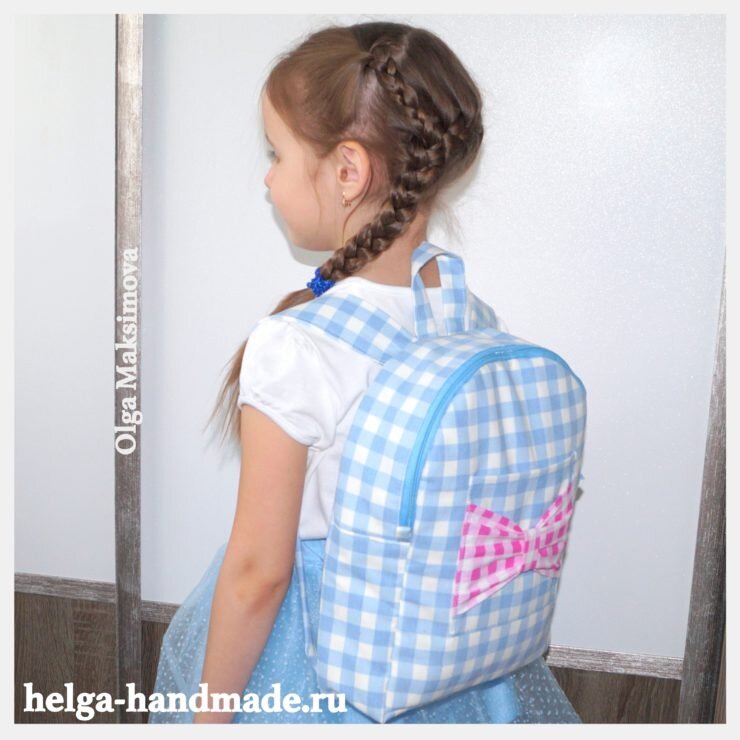На днях старшая дочка попросила сшить ей рюкзак. Она сама выбрала ткань для него и сказала, что обязательно нужен бантик. Вчера у меня получился вот такой милый рюкзачок. Шить его довольно легко и просто.