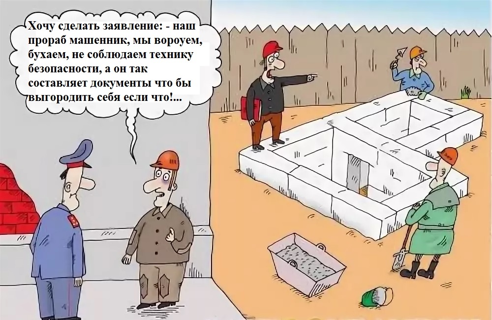 — Вот ситуация ты уже прораб строишь здание. Делаешь обход и у тебя на глазах с лесов сваливается монтажник и разбивается насмерть. Какие твои первые действия?