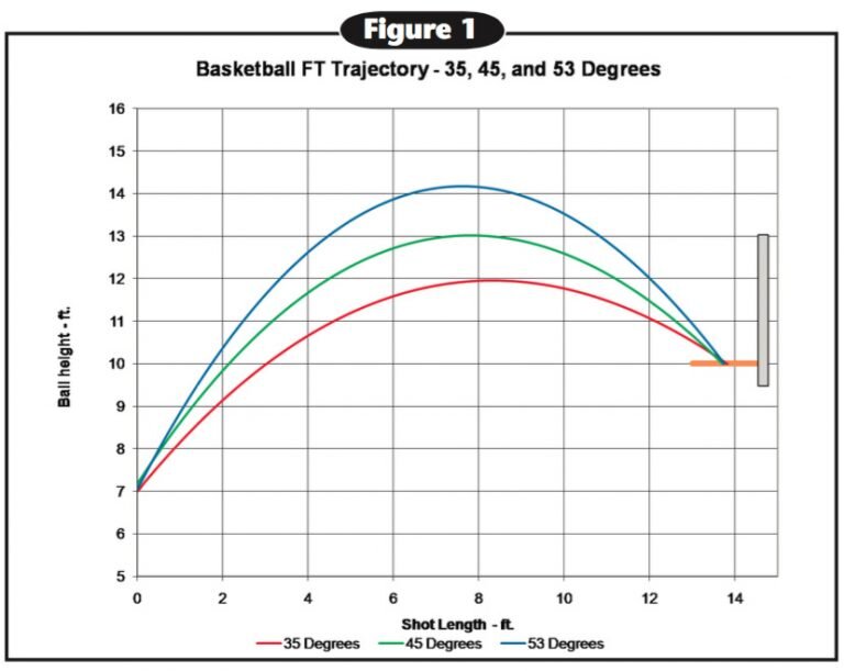 Более крутой бросок требует большей физической силы для реализации. Из-за этого, падает глубина броска (второй важный фактор), и появляется тенденция к недолету мяча.