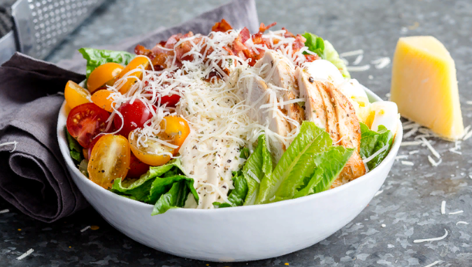 Приветствую вас дорогие любители кулинарии, в прошлом выпуске я рассказывал вам о домашнем варианте цезаря, посмотреть кстати рецпт увидеть можете вот тут>> Рецепт: Нежный салат Цезарь, домашняя версия Сегодня я бы хотел рассказать о приготовлении такого салата в ресторане, на примере как раз таки этого блюда в заведении где я работаю. Нам понадобится на 1 порцию Соус Цезарь 30 грамм Куриное филе 100 грамм Салат Айсберг 30 грамм Сыр Пармезан 30 грамм Помидоры черри 2 шт Перепелиные яйца 2 шт Сухарики 10-15 шт Как приготовить соус я рассказывал в этом рецепте >> Соус для салата Цезарь Салат режем на небольшие кусочки, которые мы смешаем с соусом и выложим на тарелку. В этот момент обжарим куриное филе заранее нарезав на тонкие кусочки, а так же посолив и поперчив. Перепелиные яйца отварим и порежем пополам, и выложим с четырех разных сторон, так же разрежем и выложим черри, добавим сухарики в салат. Как только филе подзолотилось выкладываем его и посыпаем сверху натертым сыром. Бл