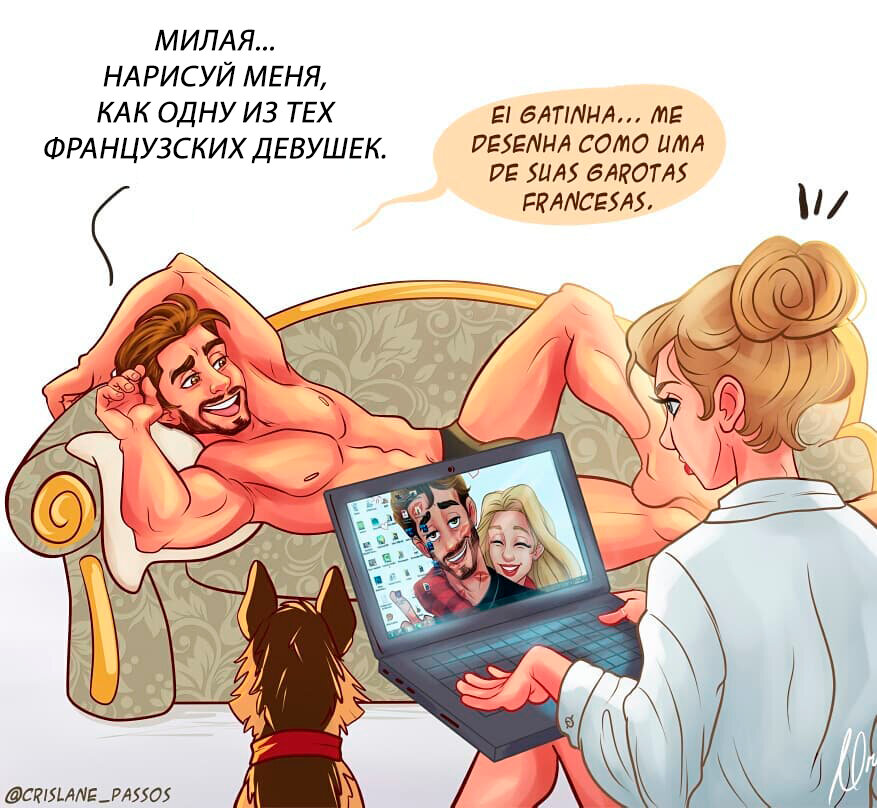 В женских журналах любят публиковать разные списки мужчин, с которыми нельзя встречаться не при каких условиях. И всегда в этих рейтингах найдется местечко для инфантила, человека, взрослого по возрасту, но в душе так и оставшегося ребенком. С такими мужчинами может быть весело, но связывать с ними жизнь категорически нельзя, ведь они ненадежны, капризны и несамостоятельны. Но, как мне кажется, именно подобные парни нравятся бразильской художнице Крислейн Пассос, которая рисует смешные комиксы о жизни и отношениях Макса и Джулии. Я уже рассказывал о творчестве Крислейн в своем блоге «Супер!» Однако с той поры комиксы о веселой парочке и их псе стали еще популярнее. В «Инстаграме» Пассос уже 350 тысяч подписчиков, она наконец-то начала зарабатывать на своих рисунках и исполнила давнюю мечту – слетала в Париж. А, вернувшись, с новыми силами принялась творить, привлекая новых поклонников. Её комиксы автобиографичны лишь самую капельку. Крислейн живет в Сальвадоре вместе со своим молодым ч