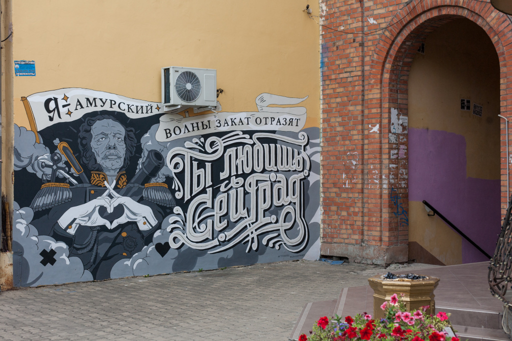 Почти ровно год назад в Хабаровске на одной из центральных улиц появилось вот такое граффити. Как это ни парадоксально, у него есть заказчик и исполнитель. И всё бы ничего, если бы это произведение искусства не уничтожило тот милый рисунок, что был на этой стене ранее: Искусство по разнарядке - это убожество, даже когда делается из самых благих побуждений.